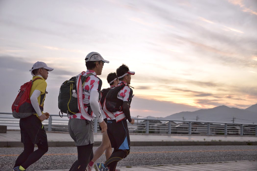 何とか5時20分にはスタートし、朝焼けの中、ゴールの博多駅に向かう。